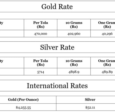 As of October 20, 2025, the latest gold rates across Pakistan have been updated by local Sarafa and bullion markets in major cities including Karachi, Lahore, Islamabad, Peshawar, and Quetta. These prices reflect the ongoing adjustments influenced by the international gold market, currency exchange rates, and local demand.