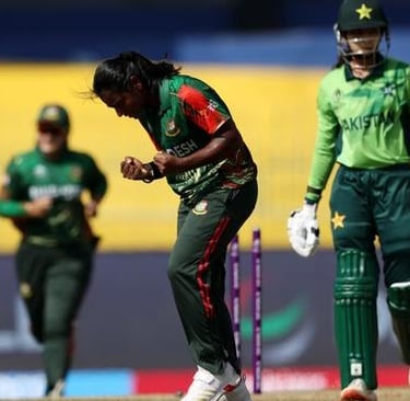 Colombo, October 3, 2025 – Bangladesh registered its first win of the ICC Women’s ODI World Cup 2025 with a convincing seven-wicket triumph over Pakistan at the R. Premadasa Stadium, Colombo. In a match dominated by bowlers, both seam and spin had their say, while debutants left a lasting impact on the contest. Here are the key highlights and talking points from the Pakistan vs Bangladesh group-stage clash: --- 🔥 Marufa Akter Lights Up the Premadasa with Pace Bangladesh’s young quick Marufa Akter delivered a fiery spell, bending the ball back into right-handers with precision. Despite the surface offering little help, she found late movement, unsettling Pakistan’s top order. Muneeba Ali struggled against her inswing, while Omaima Sohail and the in-form Sidra Amin fell in quick succession to her stump-targeting accuracy. For Pakistan, pace duo Diana Baig and Fatima Sana Khan were equally impressive, applying relentless pressure with disciplined lines. Diana’s clever off-cutters created repeated chances, though Bangladesh’s batters showed better application in the chase. With rain forecast in Colombo and Pakistan scheduled to play all their matches at this venue, seamers could play a decisive role throughout the tournament. Rivals may need to rethink their balance and strengthen pace options when facing Pakistan here. --- ⚠️ Dot-Ball Pressure Chokes Batting Units Both teams struggled to rotate strike, leading to extended scoring droughts. Pakistan, after early setbacks, adopted a defensive approach that stifled momentum. Even seasoned players like Muneeba Ali and Aliya Riaz absorbed pressure rather than countering it, leaving the scoreboard stagnant. The numbers underline the problem – each side faced over 100 dot balls in their innings. Against stronger bowling attacks later in the World Cup, this lack of intent could prove costly. Team think-tanks will need to focus on strike rotation and middle-order acceleration to stay competitive. --- 🌟 Rubya Haider’s Composed Debut Bangladesh debutant Rubya Haider (nicknamed Jhelik in the camp) impressed with a calm, mature knock to guide her team in a modest chase. Rather than relying solely on skipper Nigar Sultana, Bangladesh’s batting showed depth and resilience. Rubya anchored crucial partnerships and rotated strike efficiently, ensuring the target was achieved without panic. Her poise on debut signals a positive shift for Bangladesh’s batting unit, which has often leaned too heavily on its captain in crunch moments.